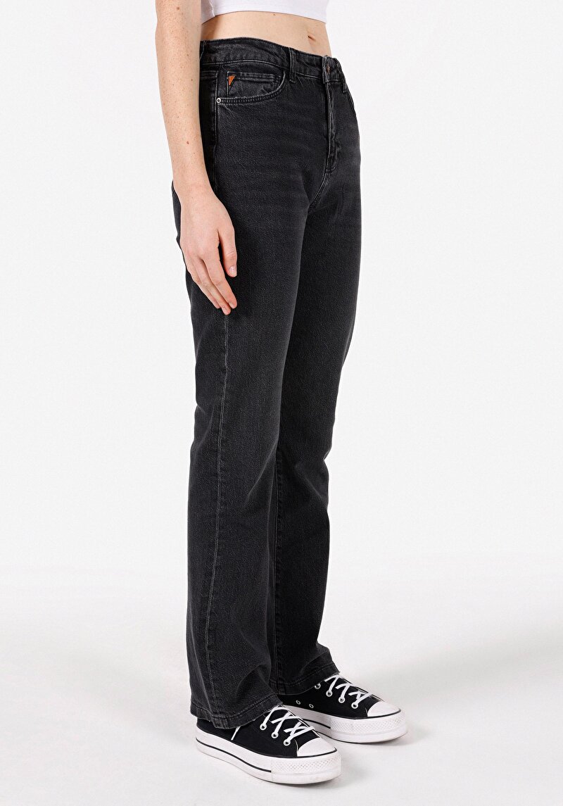Straight Fit Yüksek Bel Düz Paça Kadın Denim Jean Fermuarlı Pantolon
