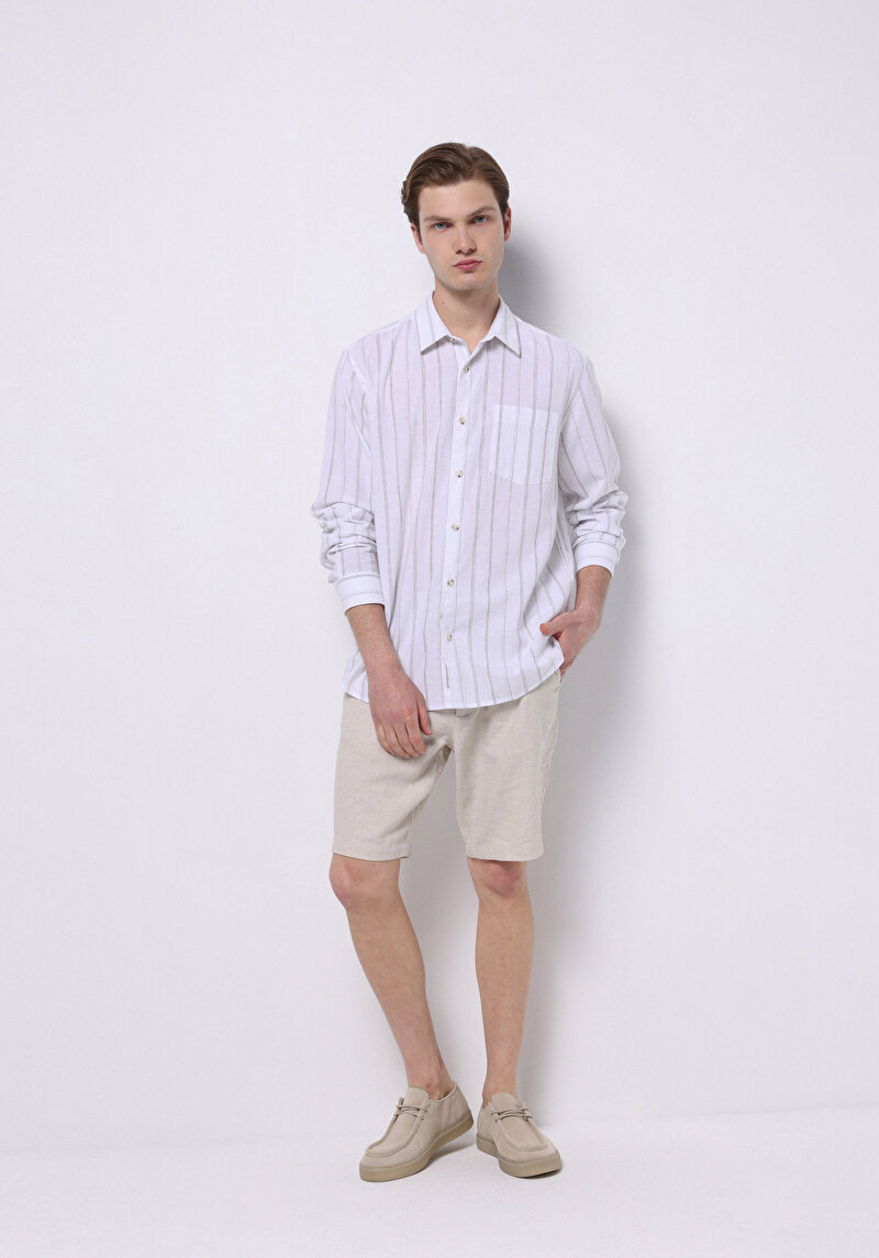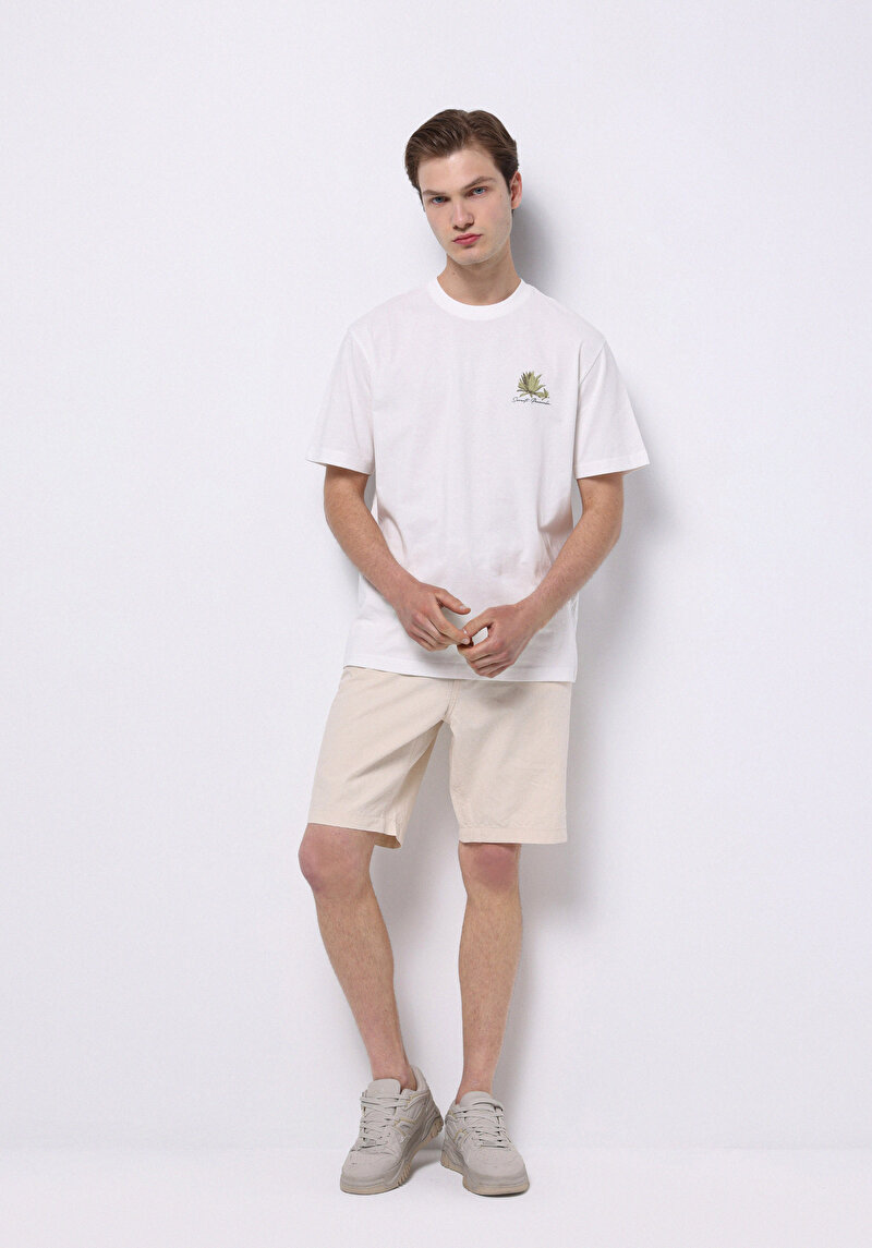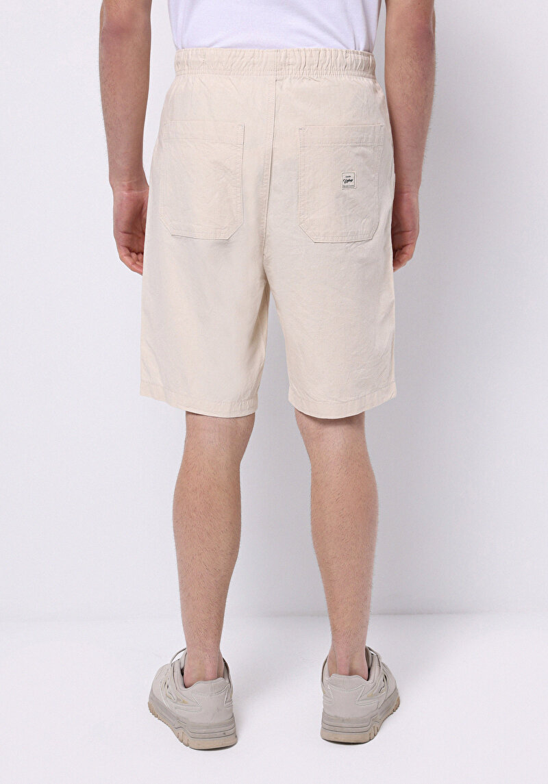 Regular Fit Orta Bel Düz Erkek Bej Şort