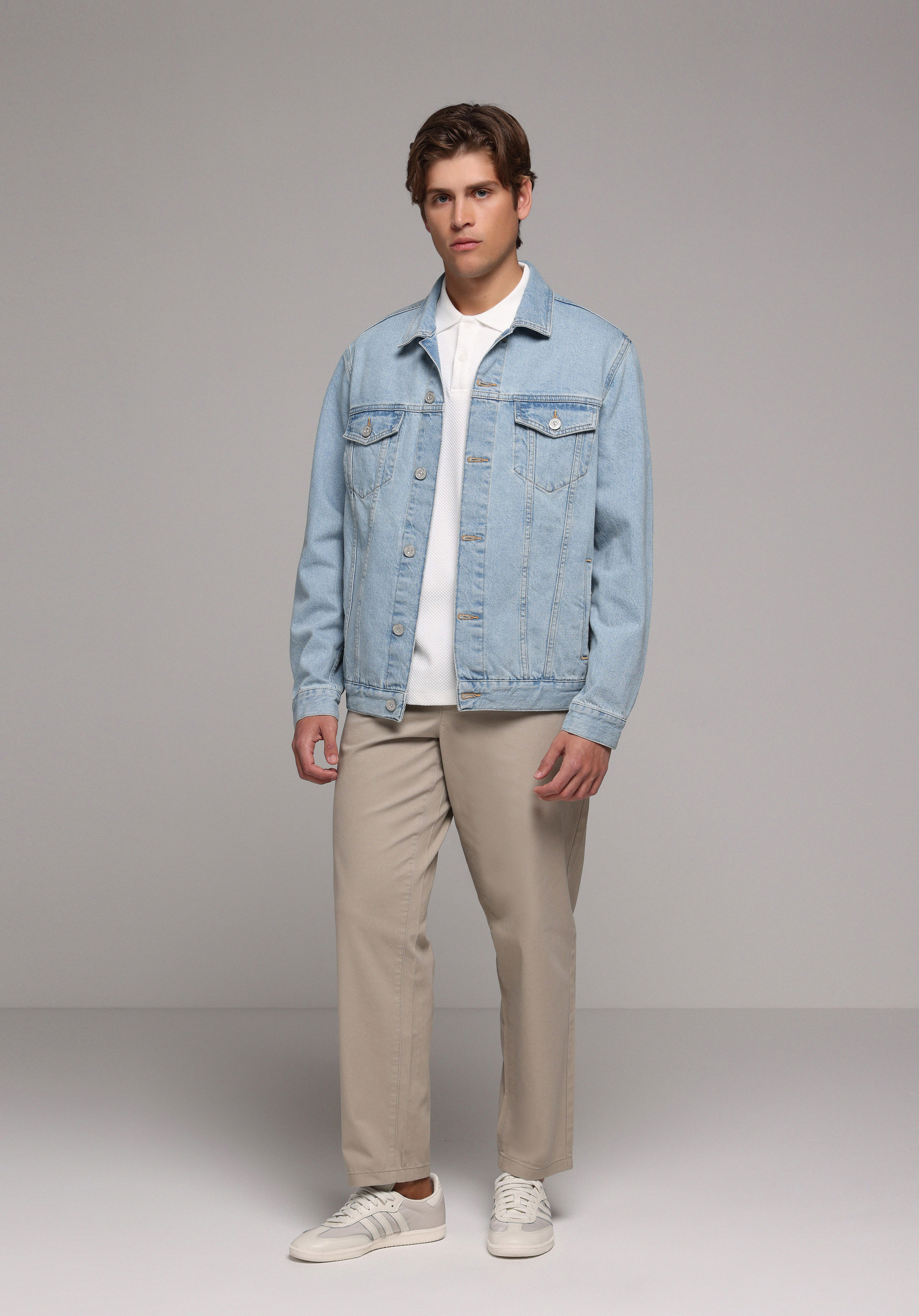 Regular Fit Düğmeli Astarsız  Erkek Light İndigo Denim Ceket