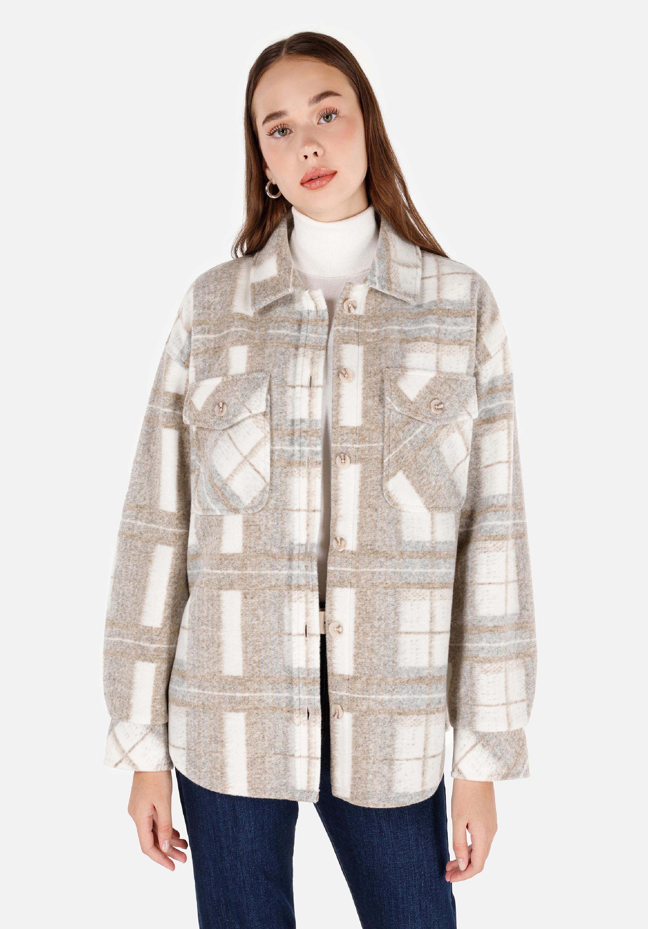 Regular Fit Shirt Neck  Kadın Bej Uzun Kol Gömlek