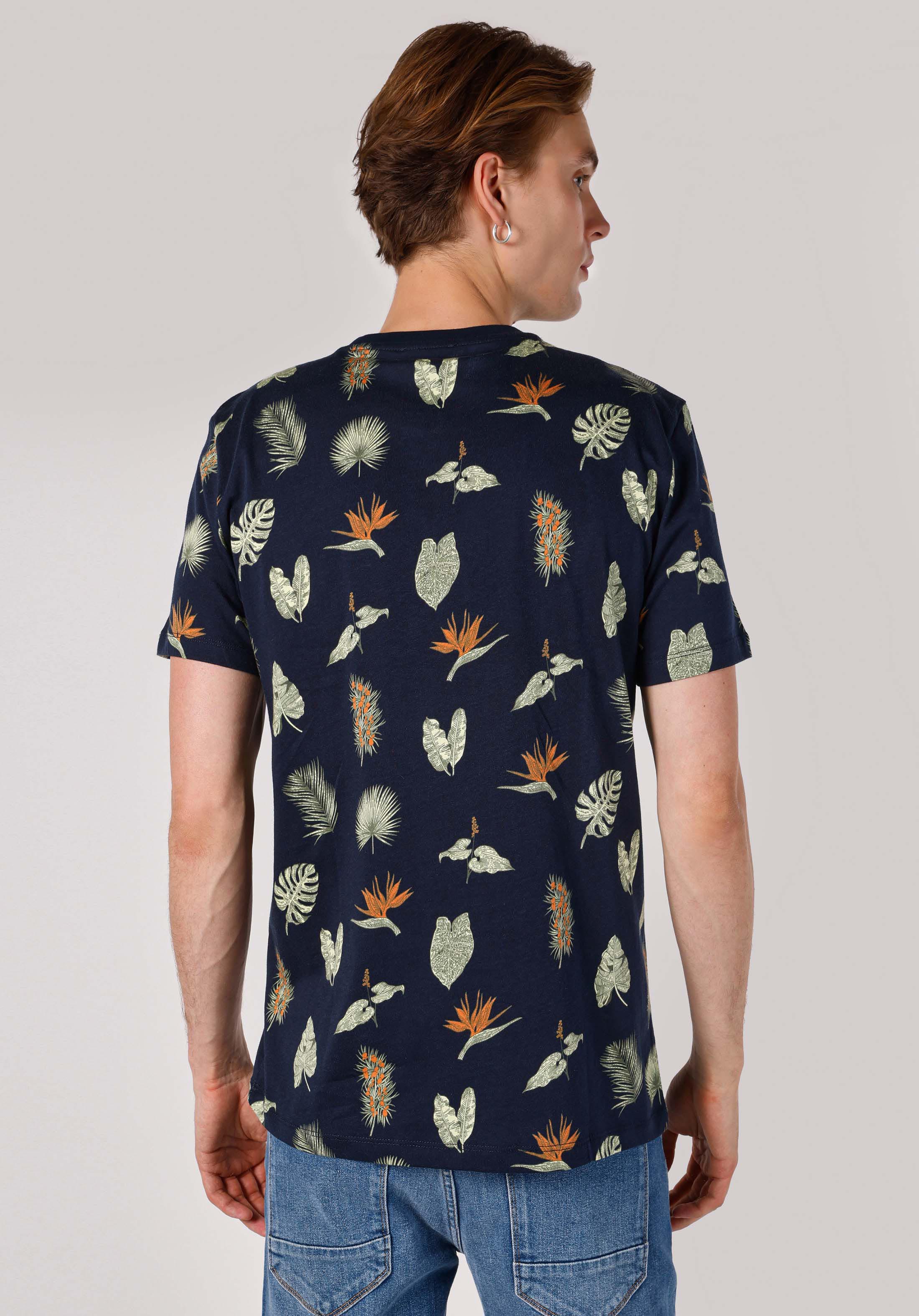 Regular Fit Yuvarlak Yaka Baskılı Erkek Lacivert Kısa Kol Tişört