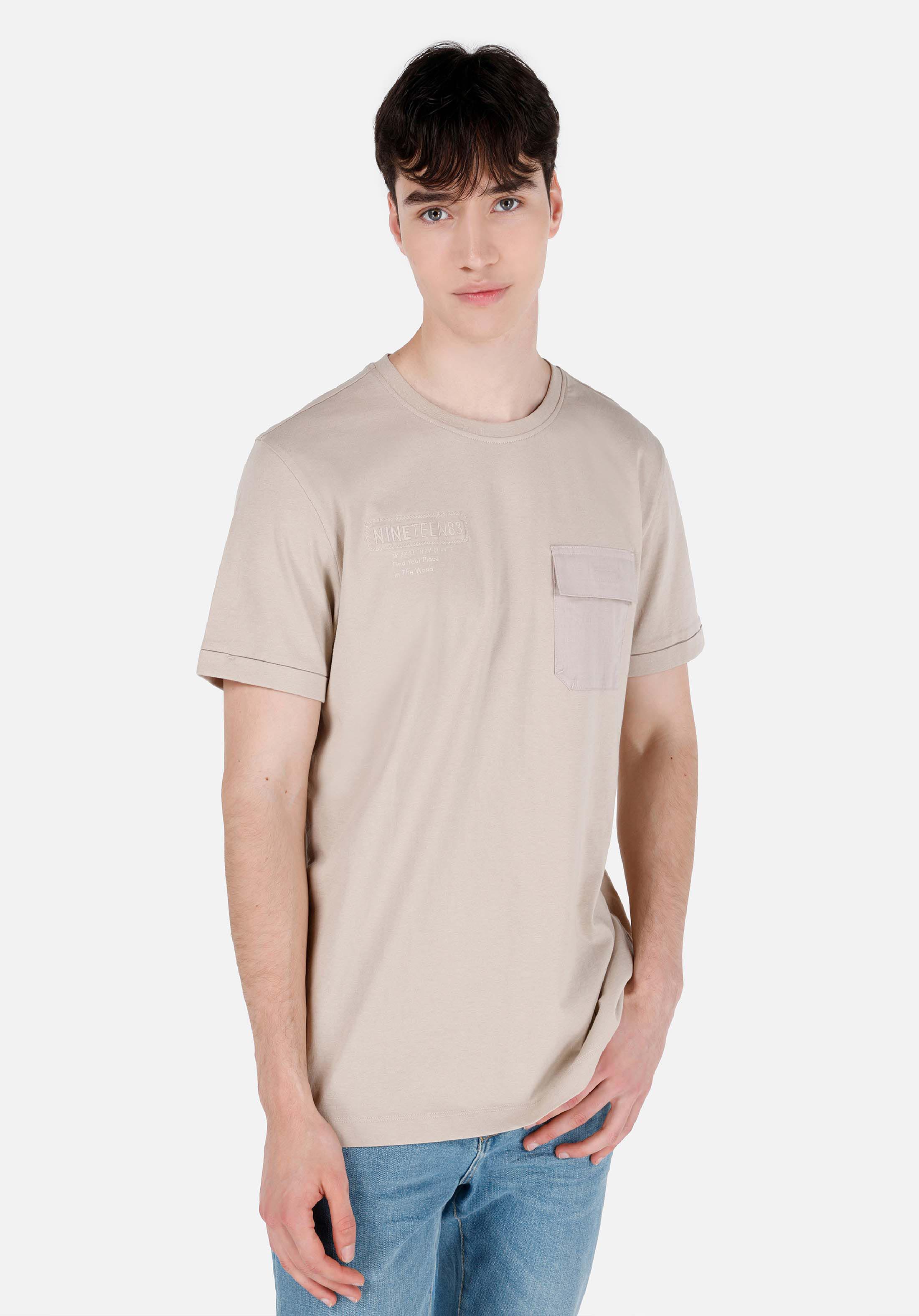 Regular Fit Yuvarlak Yaka Düz Erkek Bej Kısa Kol Tişört