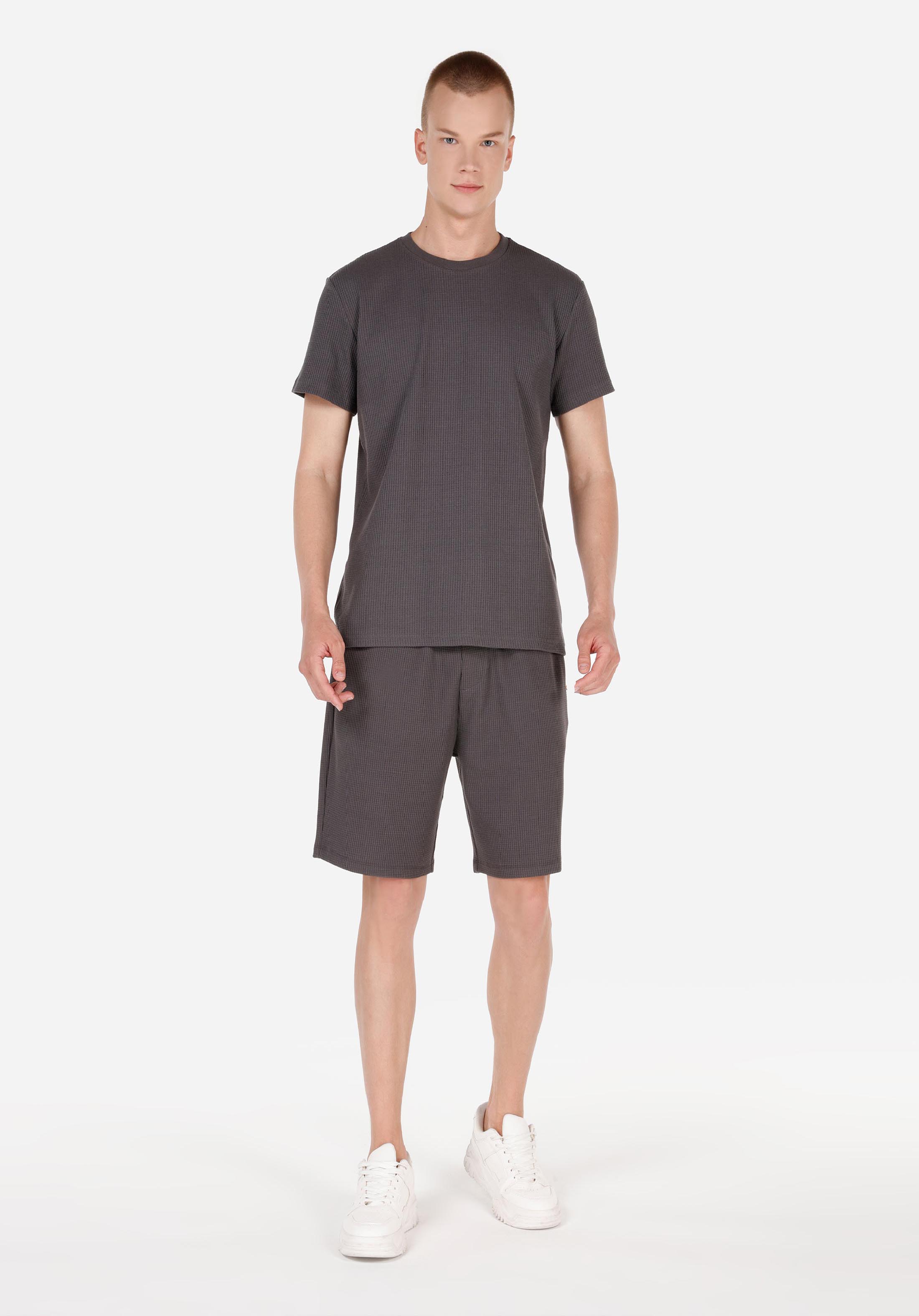 Regular Fit Yuvarlak Yaka Erkek Antrasit Kısa Kol Tişört