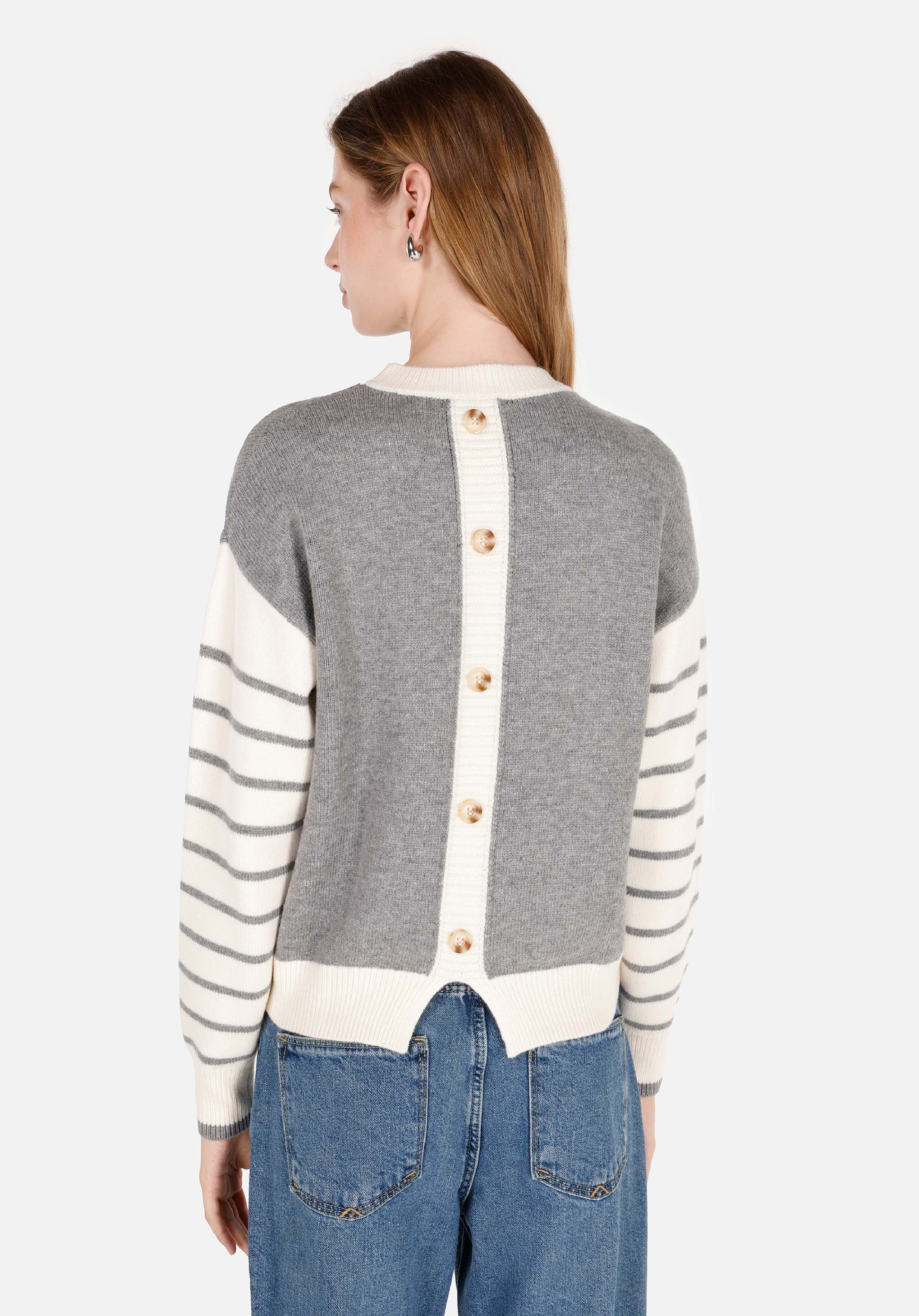 Regular Fit Yuvarlak Yaka Çizgili Kadın Ekru Kazak