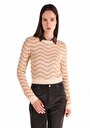 Slim Fit Yuvarlak Yaka Çizgili Kadın Bej Kazak