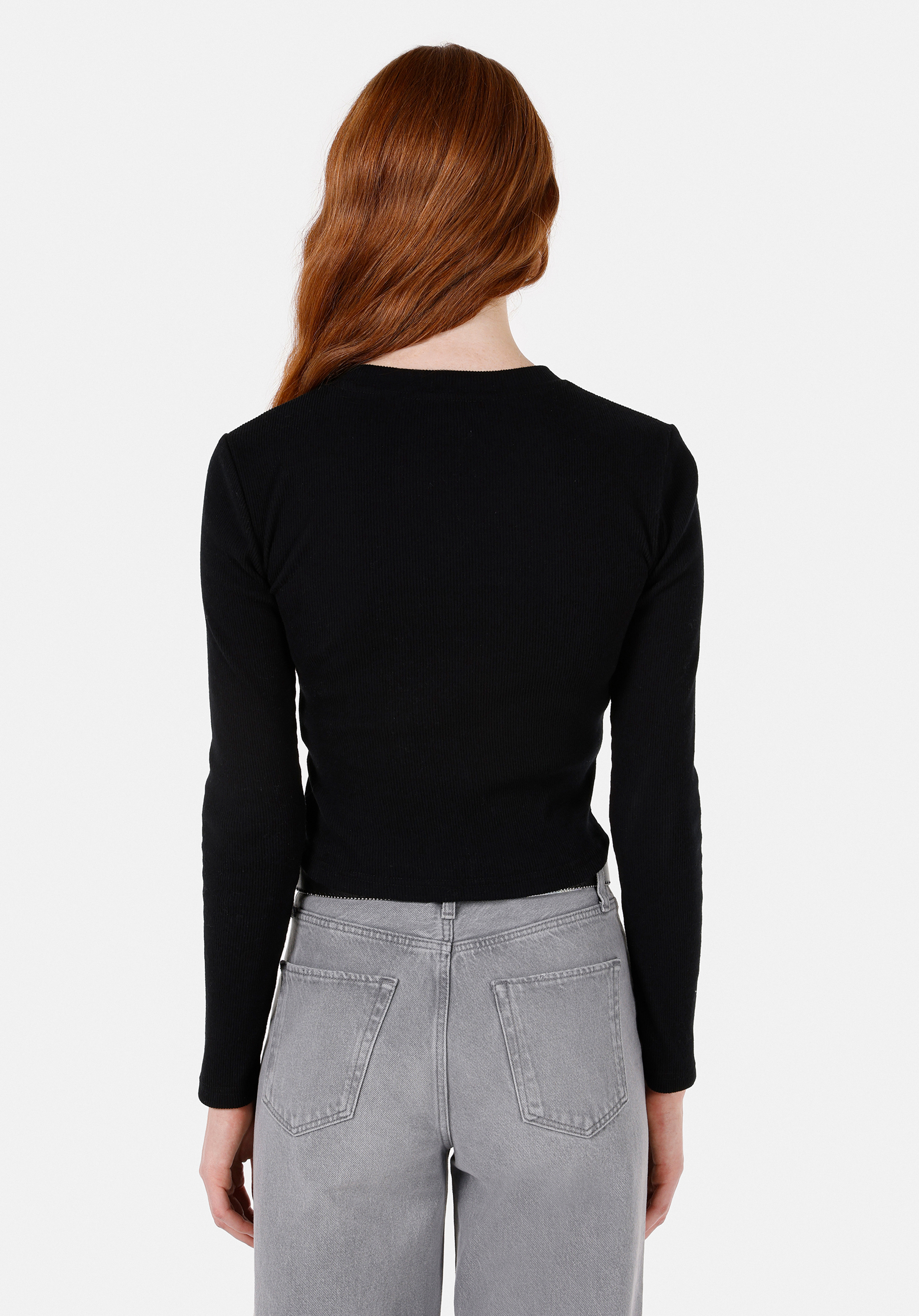 Slim Fit Yuvarlak Yaka Düz Kadın Siyah Uzun Kol Tişört