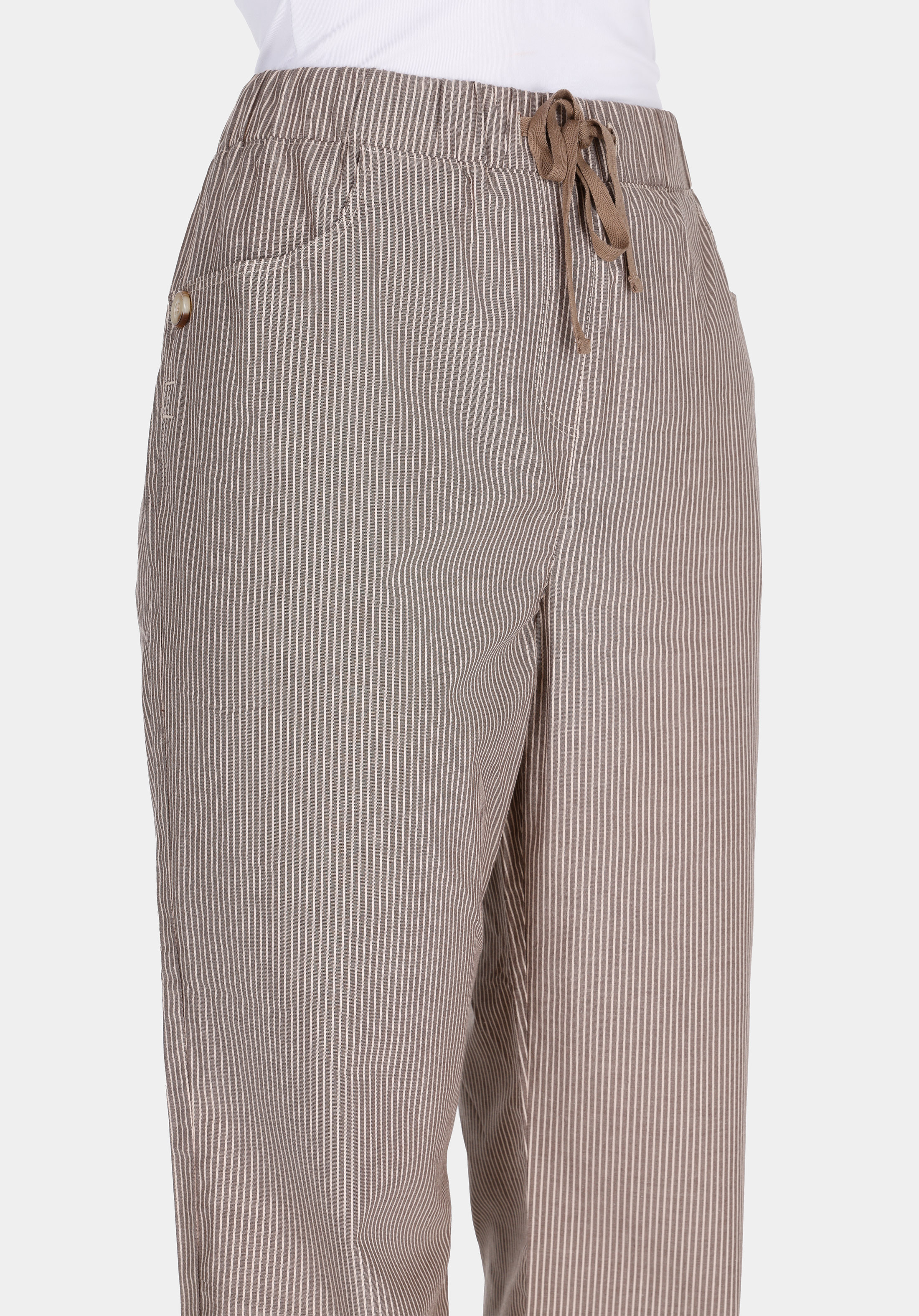 Çizgili STRAIGHT FIT pantolonunu, beyaz bir tişört ve spor ayakkabılarla günlük stilini tamamla ya da siyah bir crop top ve platform sandaletlerle akşam stilini yakala.
